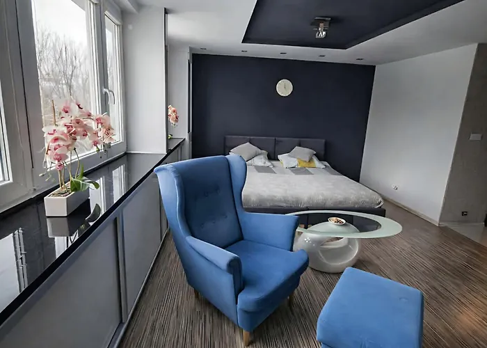 The 40 m² Black & White Komfortowe Apartamenty 2 Km Od Centrum Raciborz is located 5 km from Zaczarowany ogrod and 17 minutes' walk from Wieza cisnien przy ulicy Starowiejskiej. Wi-Fi and parking are also available at the apartment.
